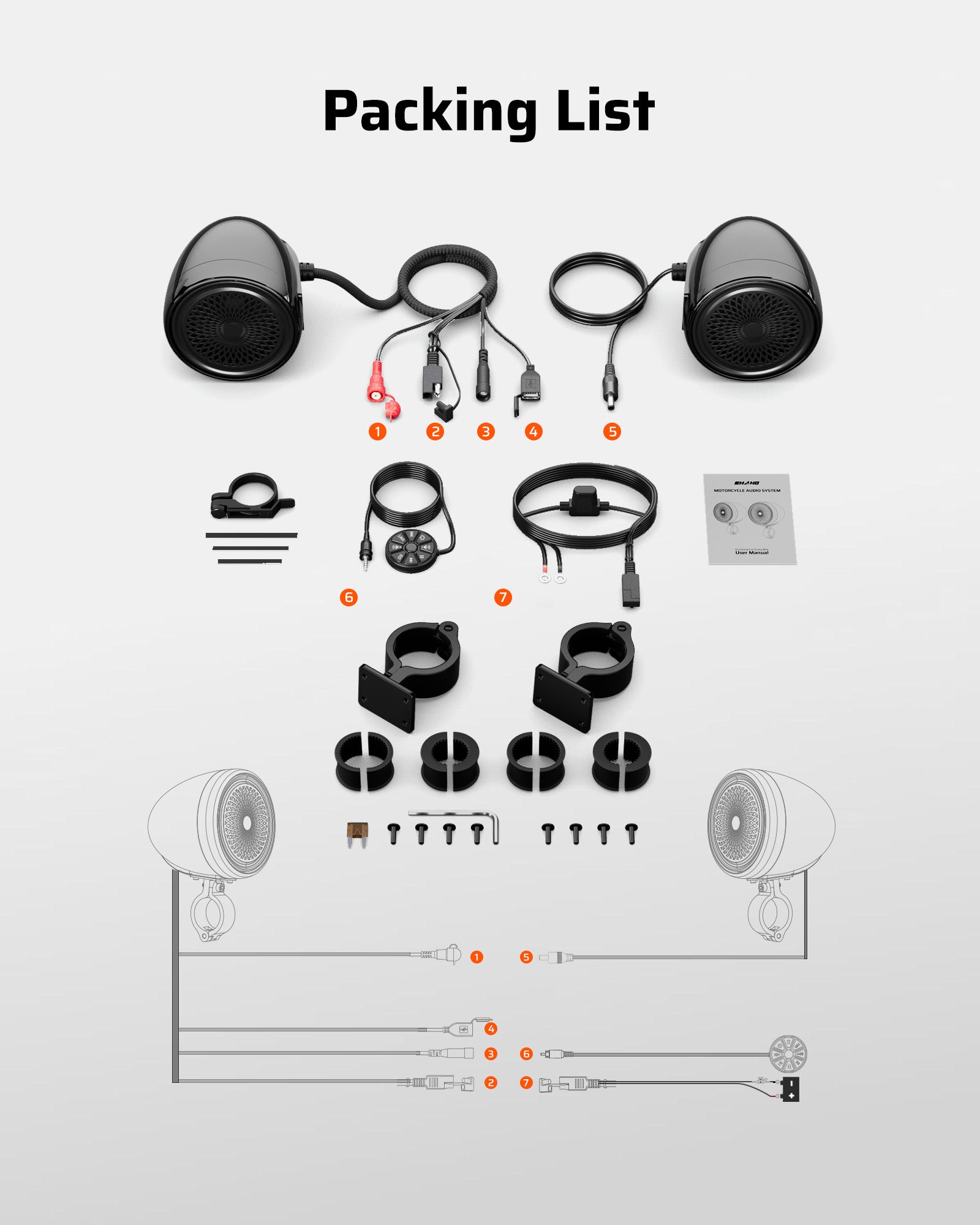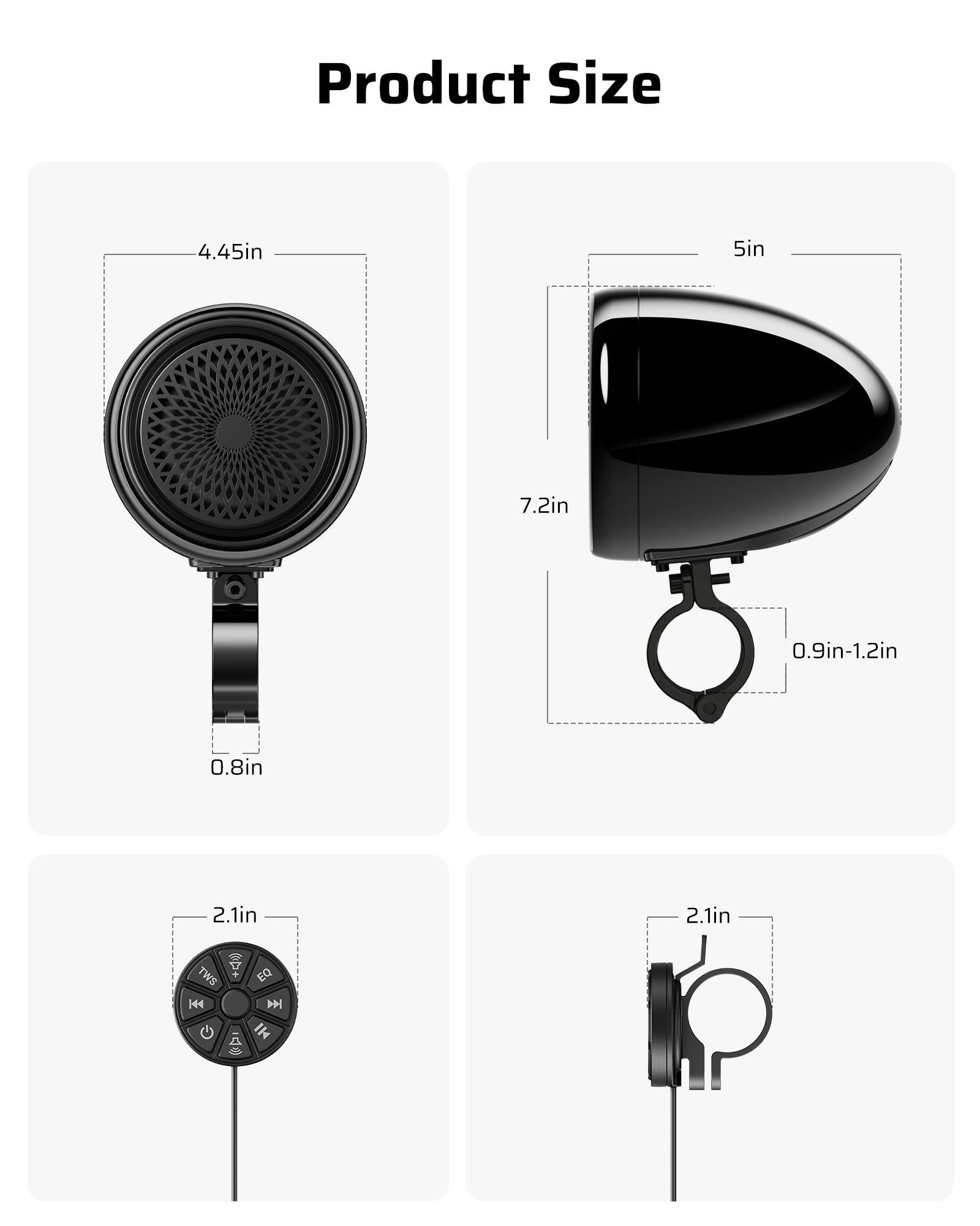 • 4-inch upgraded motorcycle speaker, 600W peak power