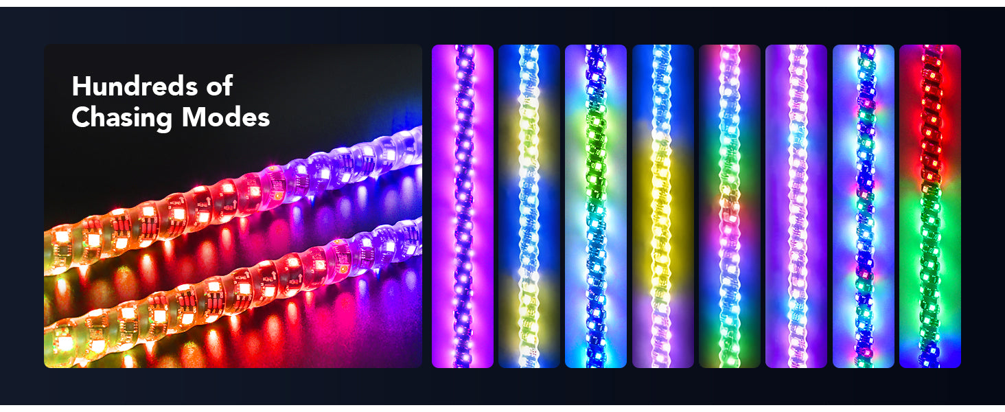 Dual Control & 360° Spiral RGBW Chasing Whip Light