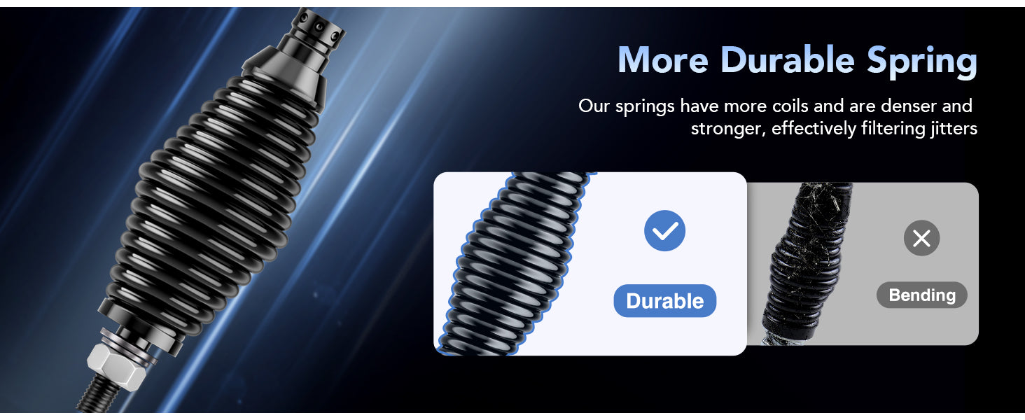 | A: Yes, both the mounting base and power cable have quick disconnects. And the base can be replaced by Ehaho Spring bases. |
